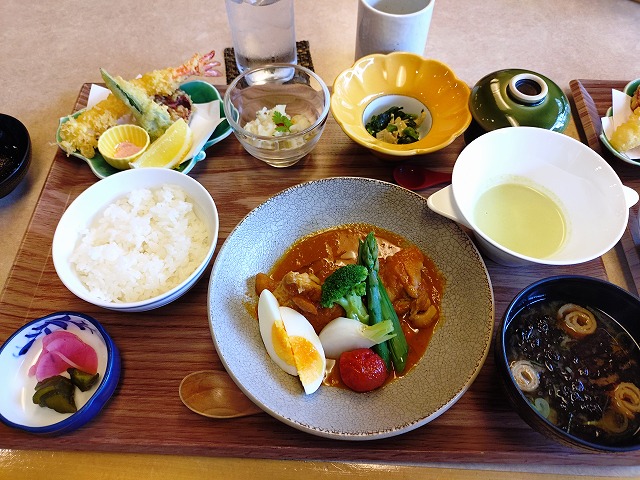 てんぷらの下にチラリと見えるのがビーツ?の天ぷら!