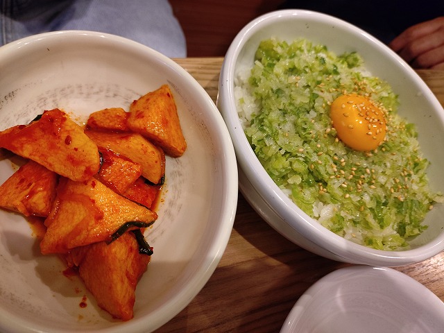長芋のキムチとネギの丼のようなもの。